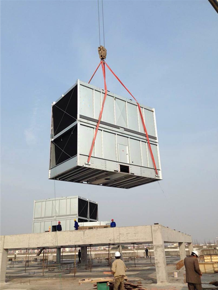 惠州東江環保橫流方形冷卻塔安裝 廣東特菱空調(http://www.lusui2976.com)方形橫流式玻璃鋼冷卻塔結構特點: (1)擋板:玻璃鋼材質,表面光滑美觀,耐腐蝕,防老化。 (2)填料:改性聚氯